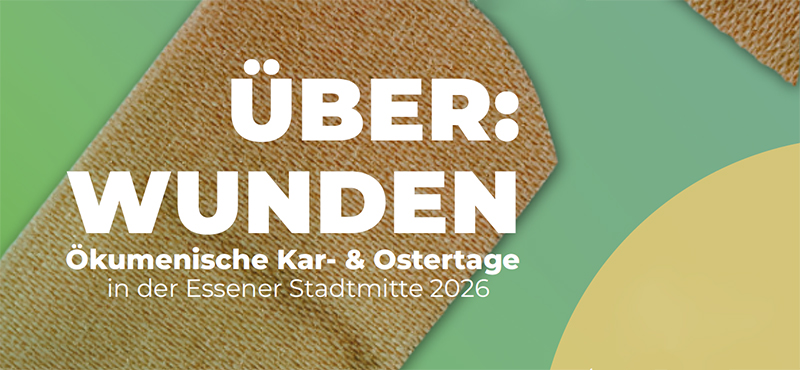 „Über:wunden“ sind die ökumenischen Kar- und Ostertage überschrieben, die die Citykirchenarbeit der Evangelischen Kirche in Essen und die Cityseelsorge „grüßgott“ am Essener Dom in der Innenstadt veranstalten. | » mehr